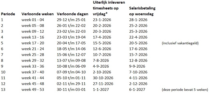Overzicht van de vierwekelijkse verloning en betaaldagen in 2026